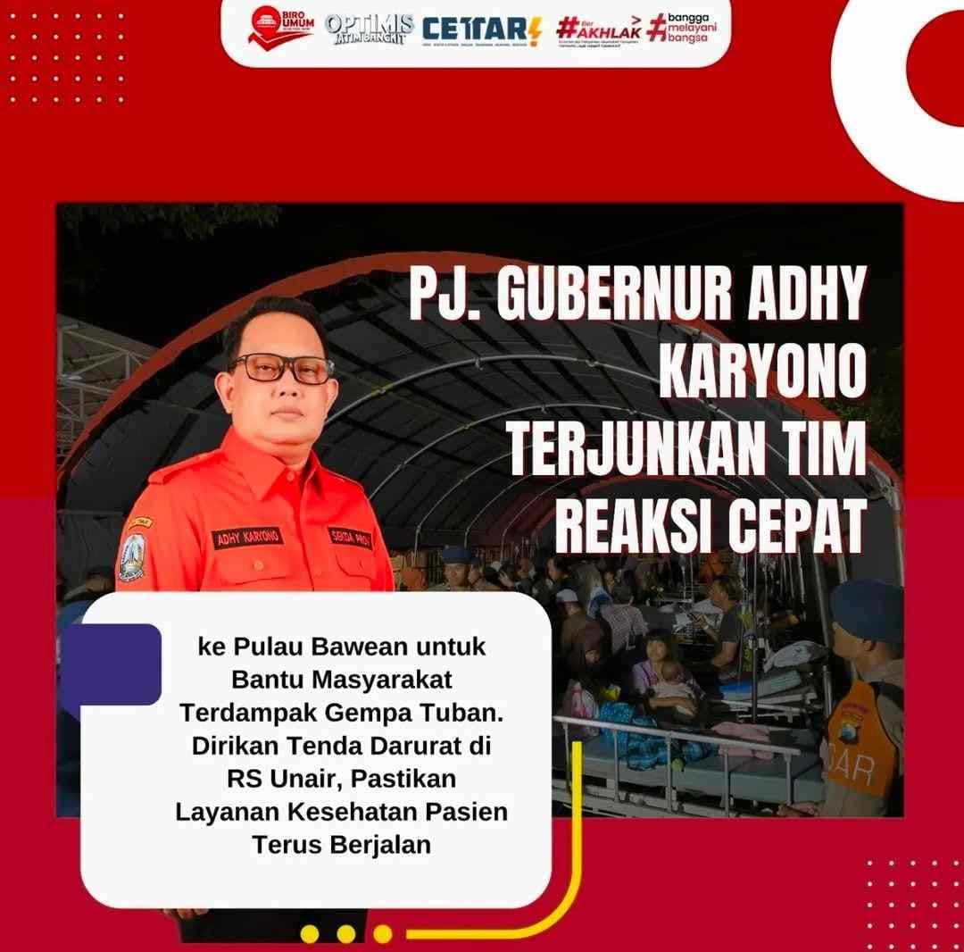 Artikel PJ Gubernur Jatim Adhy Karyono Terjunkan Tim Reaksi Cepat pertama kali tampil pada Darah Juang Online.